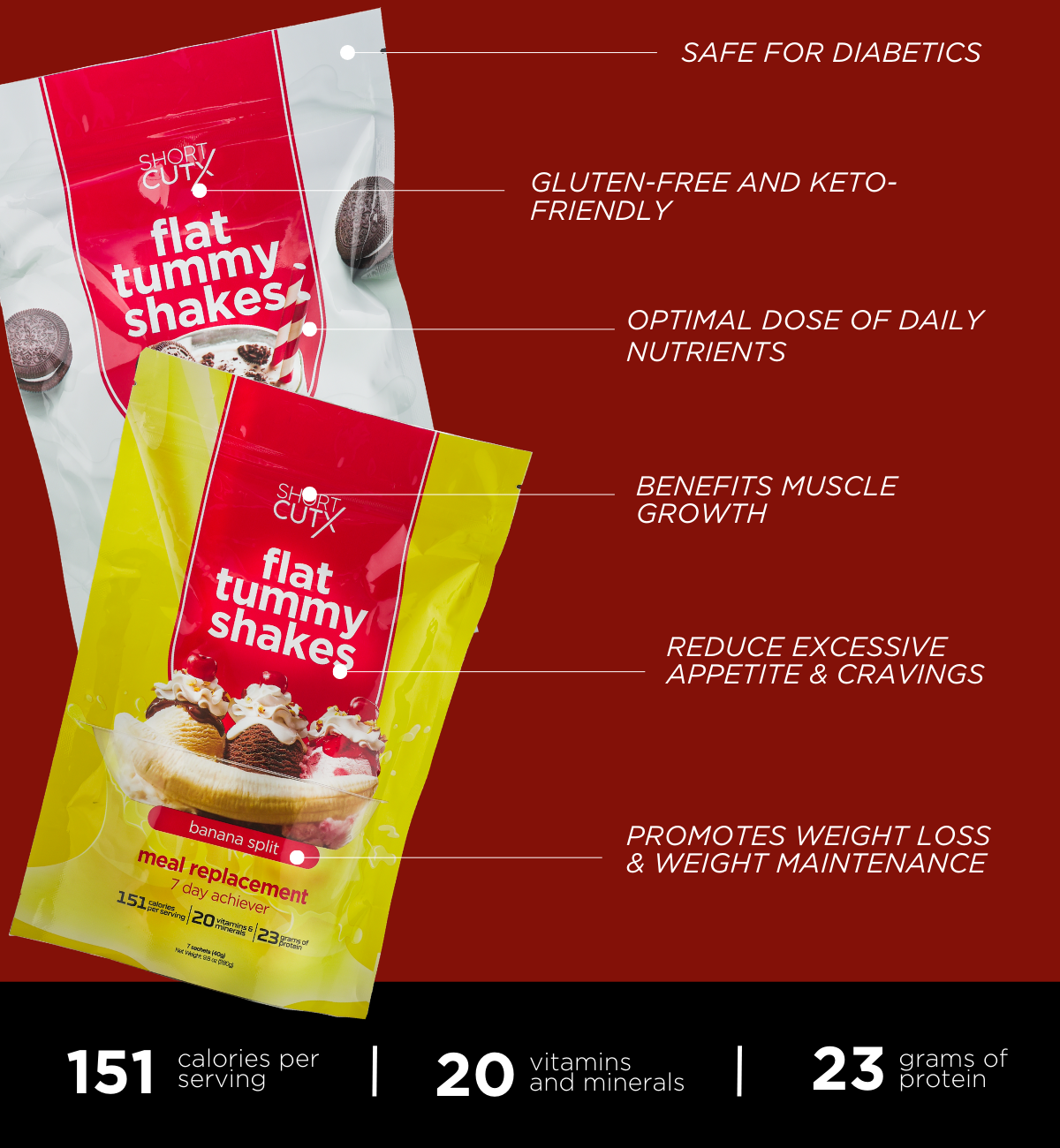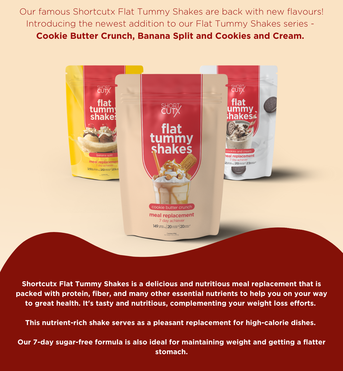 Shortcutx Flat Tummy Shakes Meal Replacement | Weight Loss Supplement [7 Sachets] [Shaker sold separately]